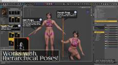 ** Hierarchical poses require the props loaded on both the Bone Minion and the target figure. For Genesis 9, the bone names ARE VERY DIFFERENT and you will need to move the props to the correct bones manually. The prop will be properly rotated for the pose but may need to be manually translated to the correct location.