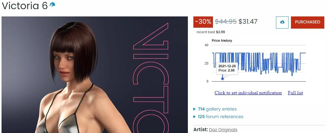 I should add that occasionally there is a store glitch that causes the prices to go to an unintended low, which generally gets caught and fixed quickly. But it's there long enough for Daz Deals to spot it, so it shows even though most people never saw that price in the store (only if they got lucky and shopped in the brief period of glitch). There was at least one of those this year (I think about May 30th)