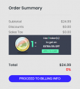 5. I add the same item (for the sake of the testing, it could be any other item) to the cart and the price is $23.74, the discount is 5% and (that's the important part) the button say "applied", and not "apply to cart". (screenshot Cart4, but could really be Cart2 as they're the same).