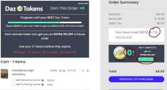 Oh, really nice. The moderators consistently ignore me and my problem, and my four tokens are all gone now (they expired at midnight Daz time). A really impressive shopping experience...