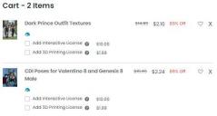 Fifer for Genesis 8 Male sku 79809 -- price shown $2.52; price as only item in cart $2.52