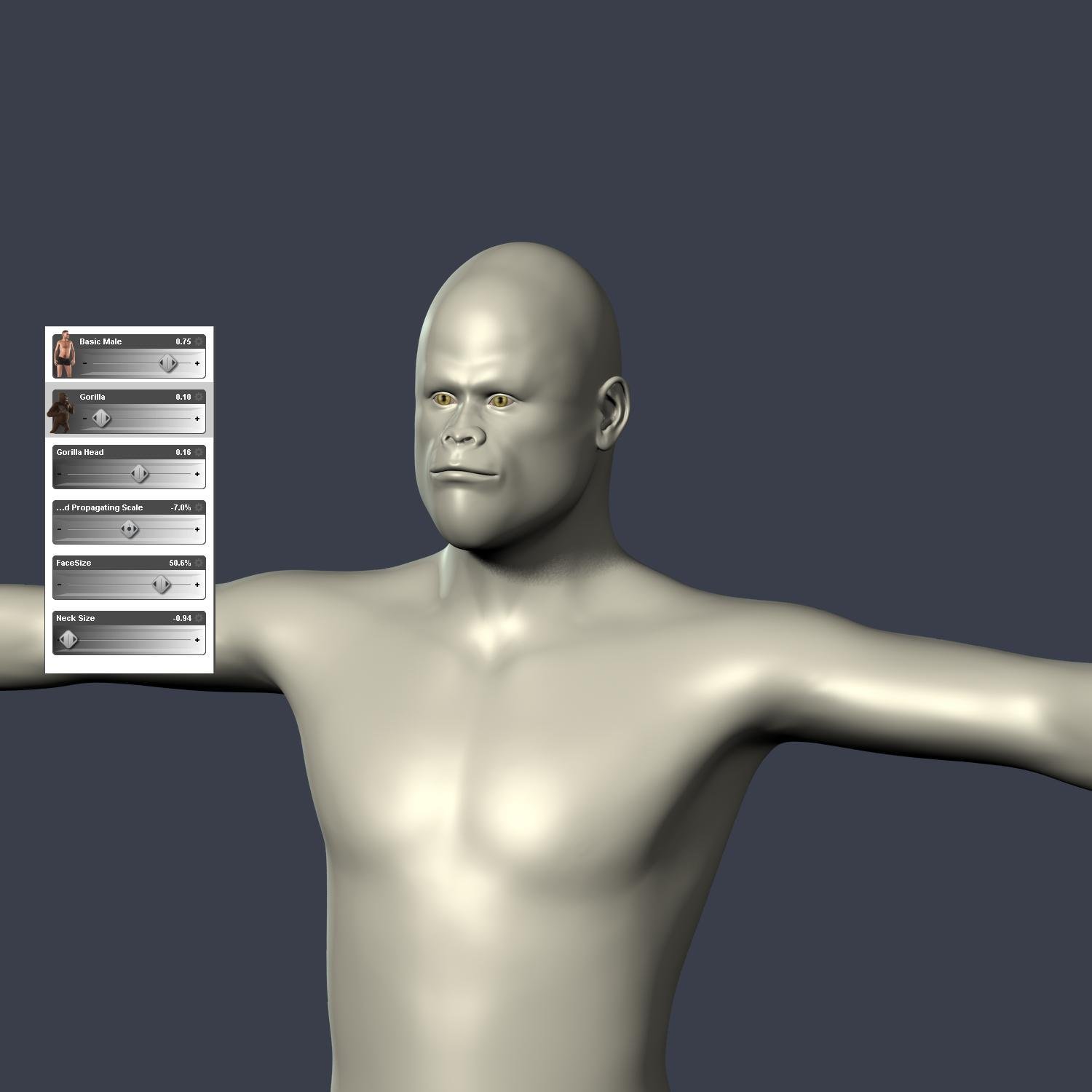 This is the chimp default load in with the Face Size morph diallled to make the face smaller.