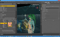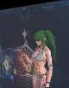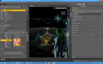 I've put together a practice scene where a character is standing in front of a screen (Phantasmagorical Scenes' Sci-Fi Screen--all hail!) I thought there should be some illumination from the screen onto the character, so I placed five lights at different areas behind the screen--relative to the character--and adjusted their colors and intensities so it would seem that the screen was giving off a uniform light blue glow and the yellow patch directly in front of the character would light her up with a dash of yellow.