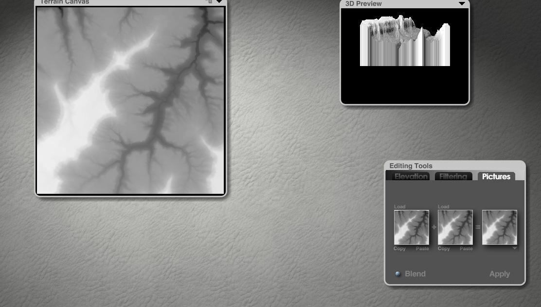 I have turned it around in Bryce but can't get a proper look. I have attached some images of the png's after being exported from the terrain height map generator. I have used it as is without doing alterings. I have used the 'merged' png. Am I missing something in Bryce's terrain editor? I am not using terrain editor and learning. Where do I increase terrain resolution?