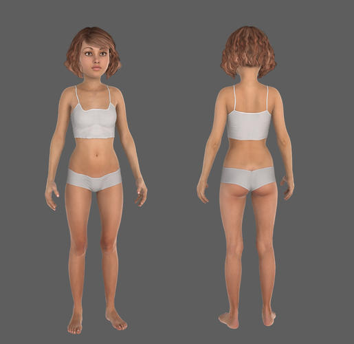 Those show me nothing. I cannot see body shape and details. Post her in underwear or a bather. Standing up. Your clothing is hiding the body shape, which is what I want to see.