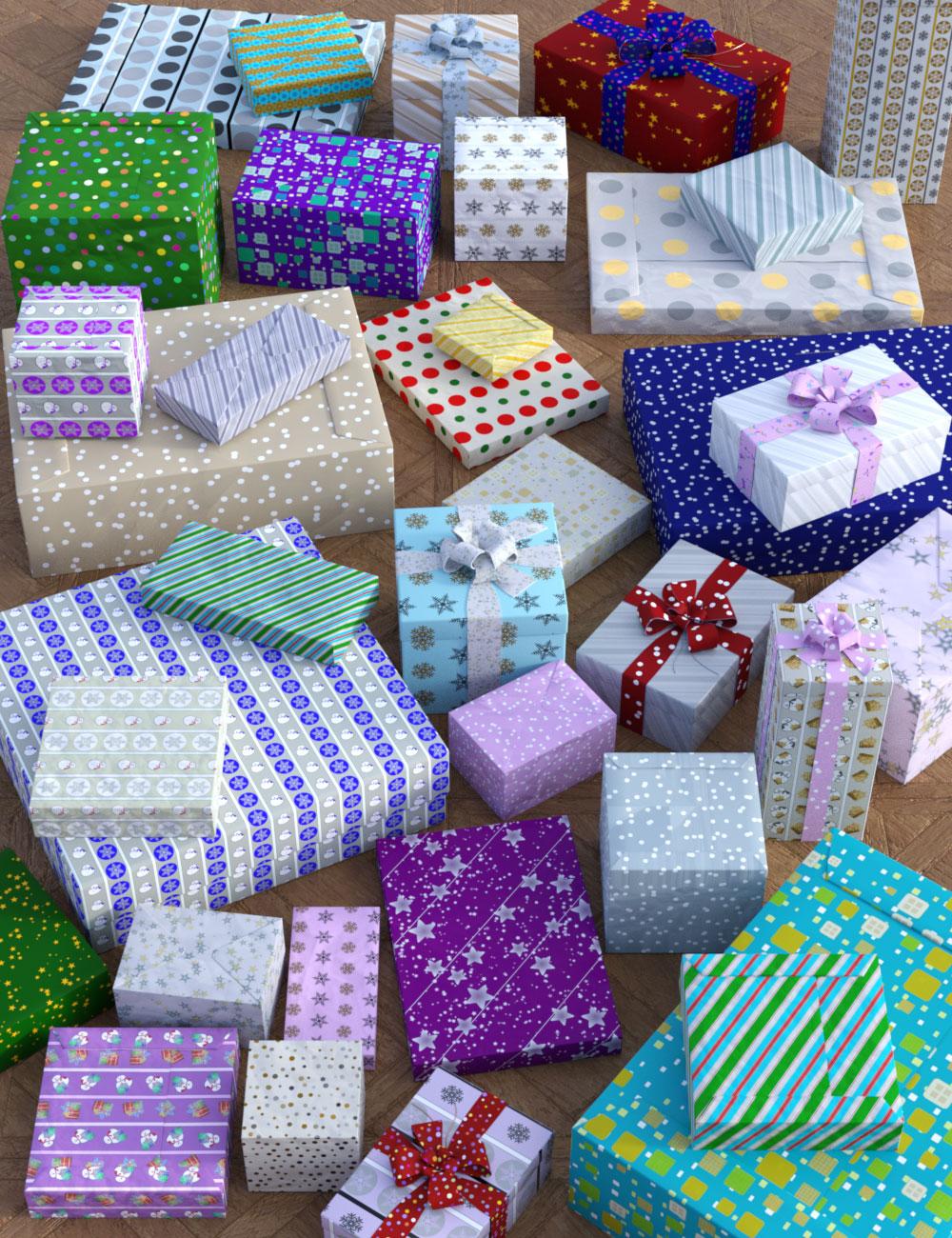 - V3D Gifts Shaders : a set of plenty of seamless shaders for gifts and gifts papers. Some based on Christmas, others more general so that you can use them at any time of the year – and not only Christmas -, some being classical shaders, others shaders being based on overlays (based on diffuse overlay) allowing you to choose the exact base color you want. Additional tools such as normal maps (for “imperfect” gifts) maps and strengths, gloss, and tiles are also included.