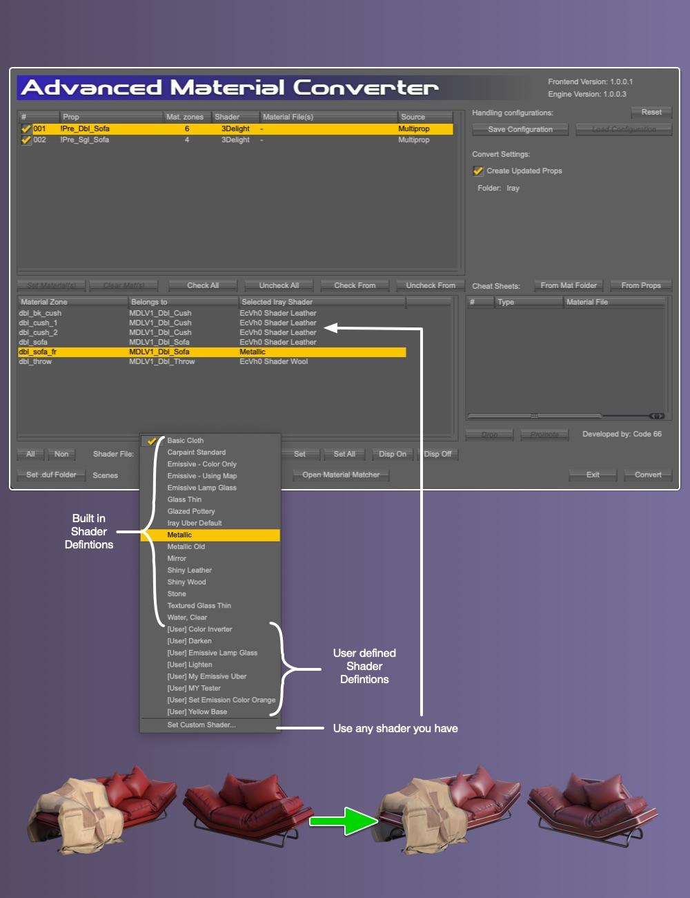 So, you have a large collection of props and environments in .duf-format that has 3Delight materials, or you have converted your old .daz or Poser sets to .duf, but the materials still does not look good in Iray. Fear no more, Advanced Material Converter is soon coming.
