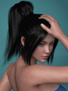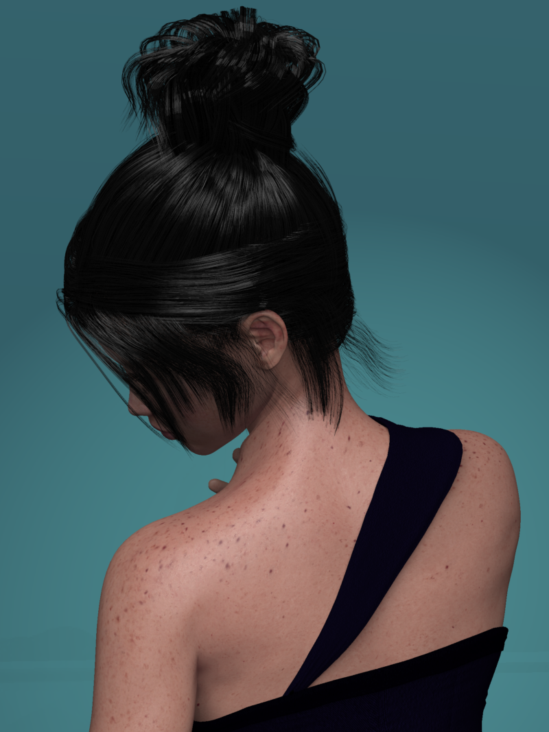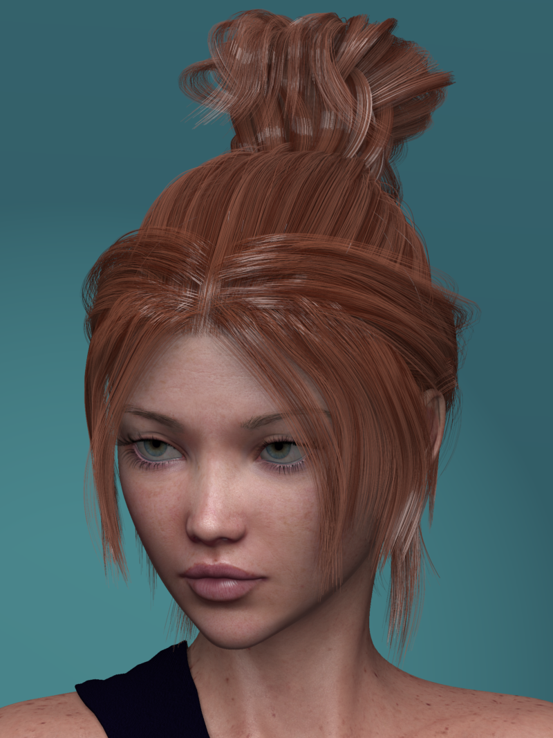 I classify this one as a 'medium length' hairstyle, because although it implies quite long hair, because it's in an updo there's no difficulty using it in really any pose.