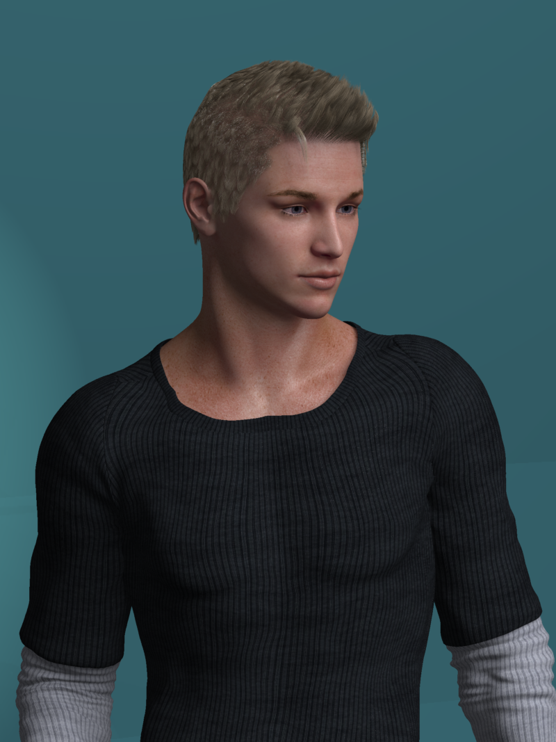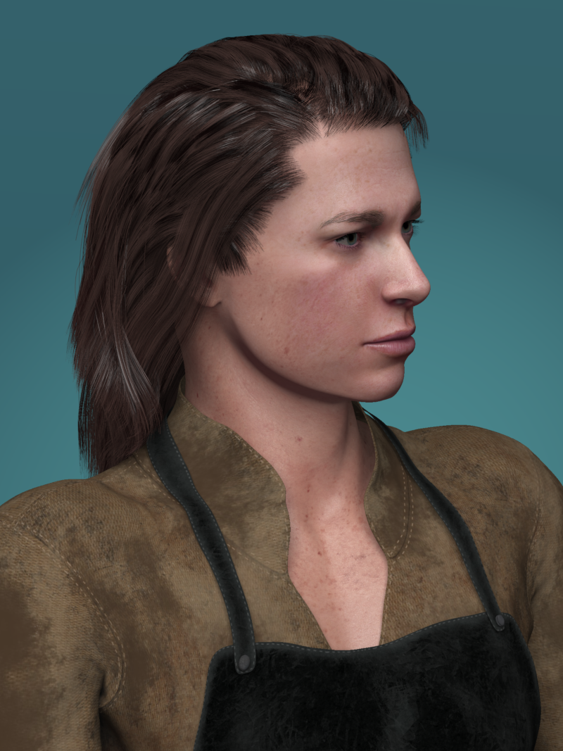This is an older hair I made a while ago on an older platform, and I was on the fence about whether to include it because I was never happy with it back in the day.  But after plugging away in the Carrara hair modeling room to churn out a bunch of hairs, I learned a lot of new tricks, and armed with that newfound honing of knowledge I dove back into this one to see if I could update it in such a way that it was more acceptable.  I'm mostly happy with it now, and I can see it being very useful as a swept back messy long hairstyle that would work well in most fantasy settings.  Or perhaps pairing this with a beard, it might work well in a modern scene of a spec ops team member.