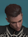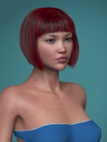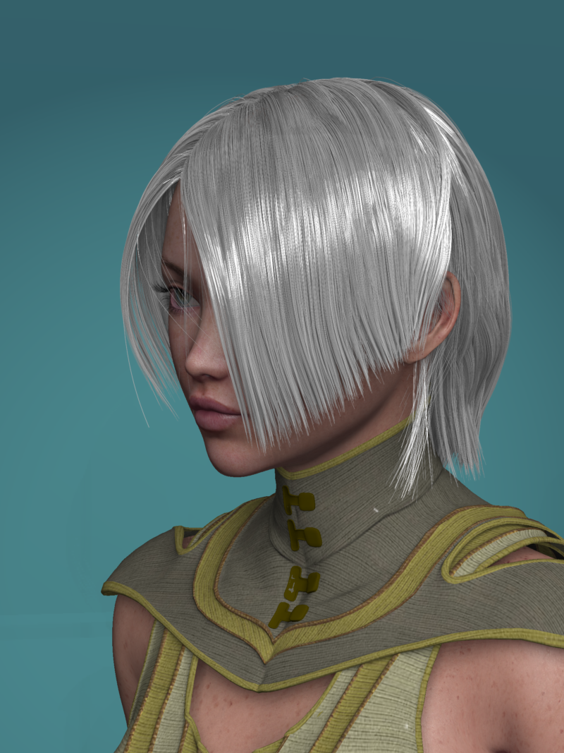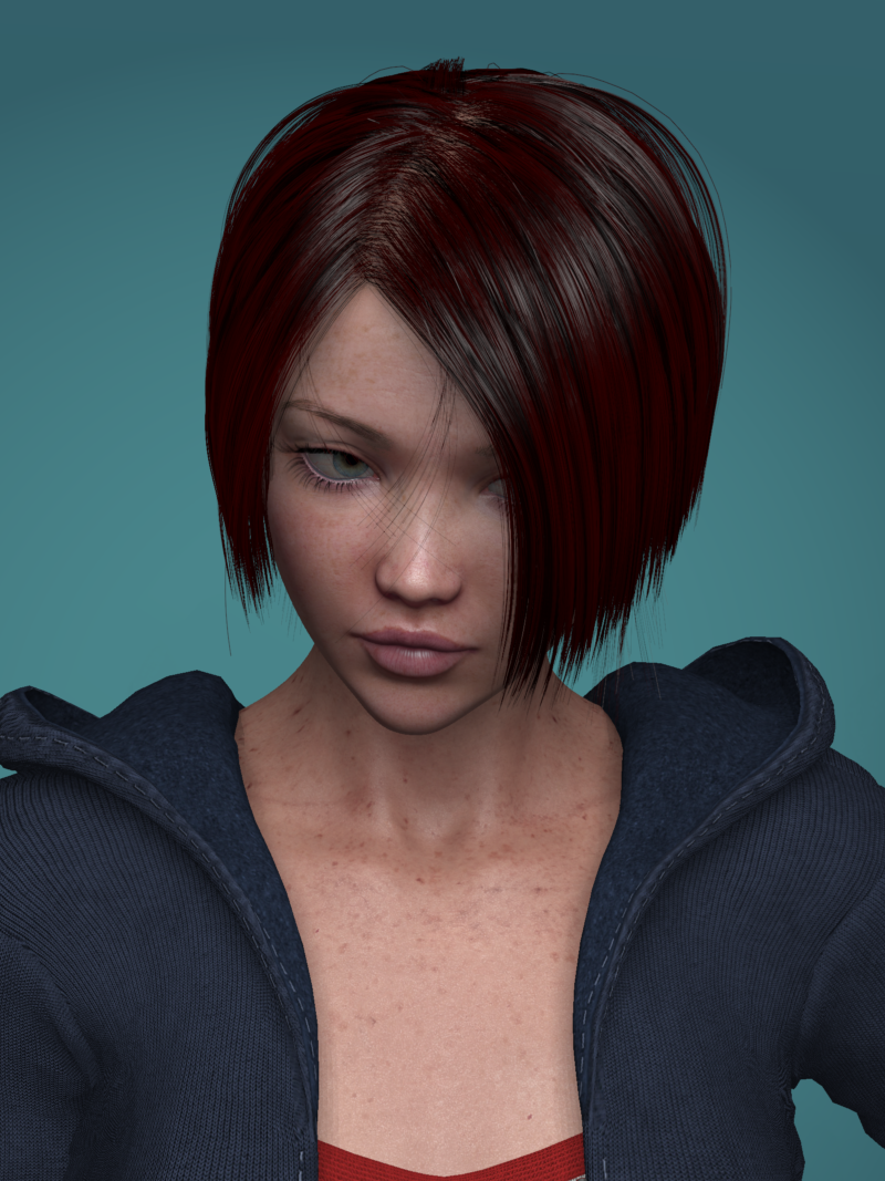 So this is the one that has the flaw, I spotted a couple of days ago.  I don't know what was causing it, but a tiny bit of hair on both the right and left sides of the part are attracted to the ends of the opposite side of the part.  I shelved it and was going to take it back to the drawing board to fix this, but when I loaded it back up there was no issue.  So I couldn't figure out what went wrong the first time.  So then I started rendering the display pics you see below, and at first there was no issue, but you can see that on the later renders (the pink, the espresso and the silver shader pics below) the issue reappeared.  It just looks like a tiny few hairs is falling across the face, so I still think it's ok and in fact it might even be a feature more than a bug.  Nevertheless, this one puzzled me, as I learned there is more to learn about how the hair interpolation tool works.