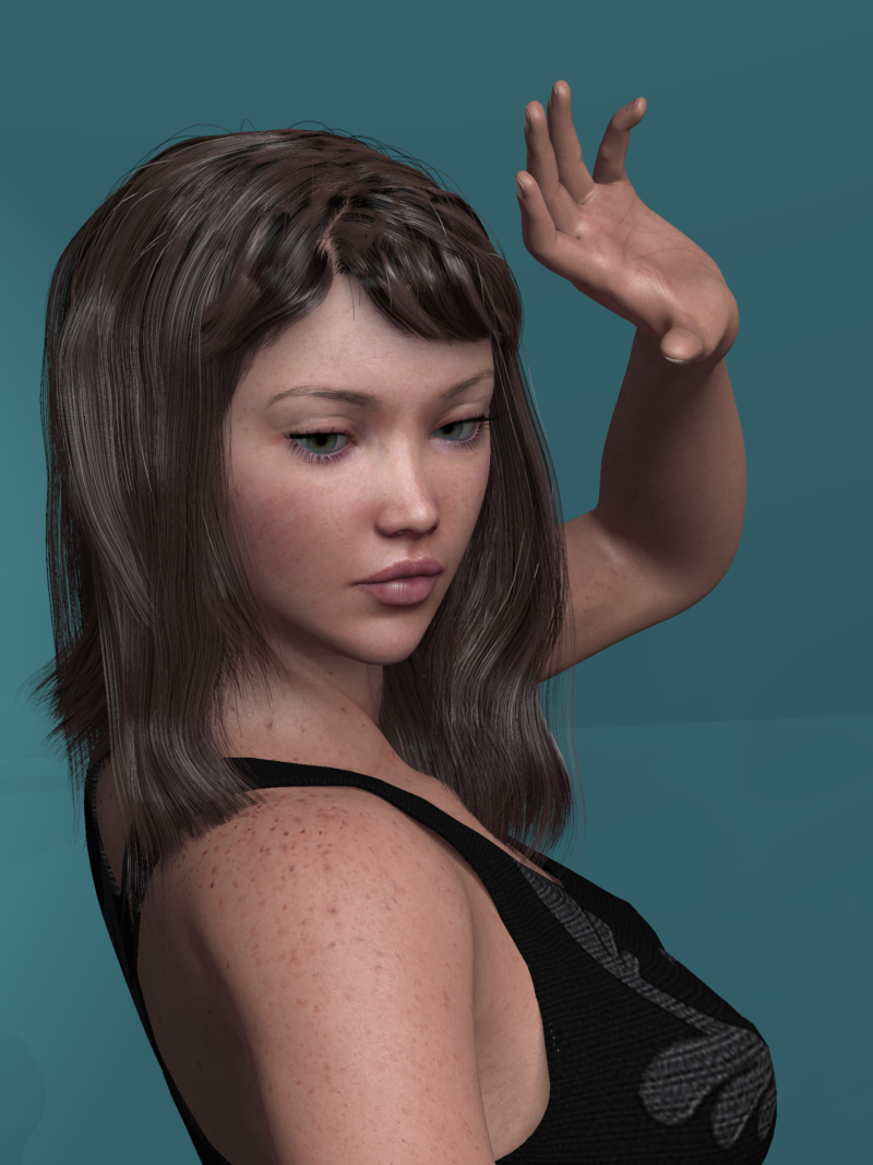 Those video you made gave me the perfect starting point for that hair. They also helped me to be more fearless with the settings. Knowing a bit better what they do really helps. So to help get Rosie 5's hair to keep from going everywhere, I used many point forces (some pulling in like a black hole, others pushing out for volume) along with various collision meshes that I could animate according to the scene. That stuff made this So Much More than what I am doing now with dForce. I will be revisiting this stuff again, for sure! Probably try going back to the basics without all that fancy stuff and, if/when I feel that I need some Anim-Help, I may just try some of Carrara's many other tools(?)!