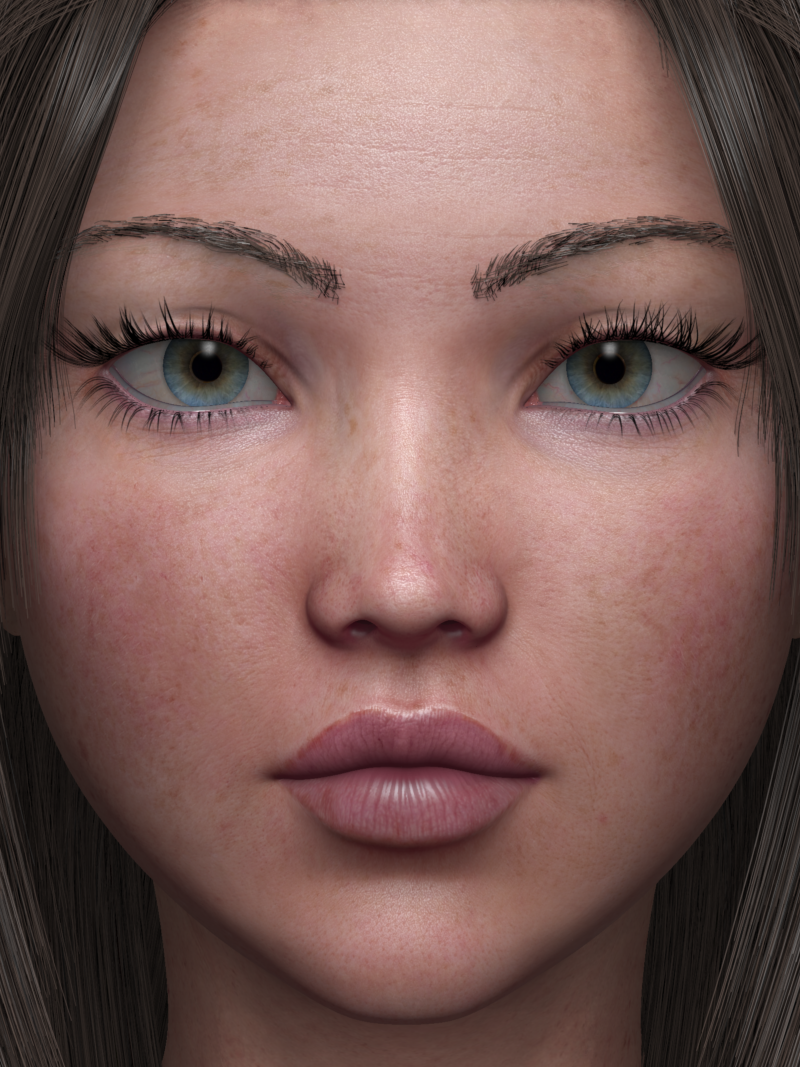 What is needful to know about these is that because they are attached and growing from the eyelids, pretty much every time you dial in a new character that changes the shape of the face and particularly the eyes, they are going to go slightly wonky.  Usually they're fine and usable, but sometimes they'd need to be yanked straight out at a 90 degree angle by a brush at 100% stiffness and 100% strength, and then brushed back up (and down for the lower lashes) in a gentle curve.  It's pretty simple and easy to do, but it's still an extra complication probably no one is eager to add in to the workflow.  However imo they can look more natural than the standard prop transparency eyebrows, so maybe these will be useful for someone.  :)