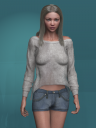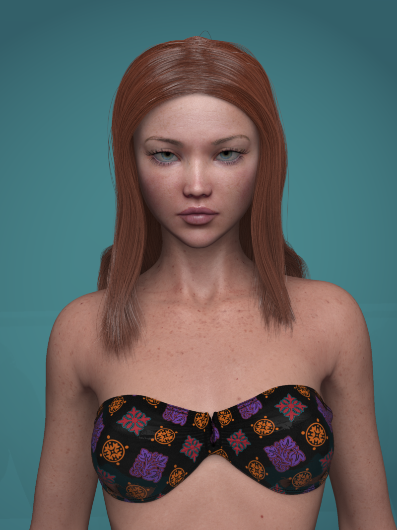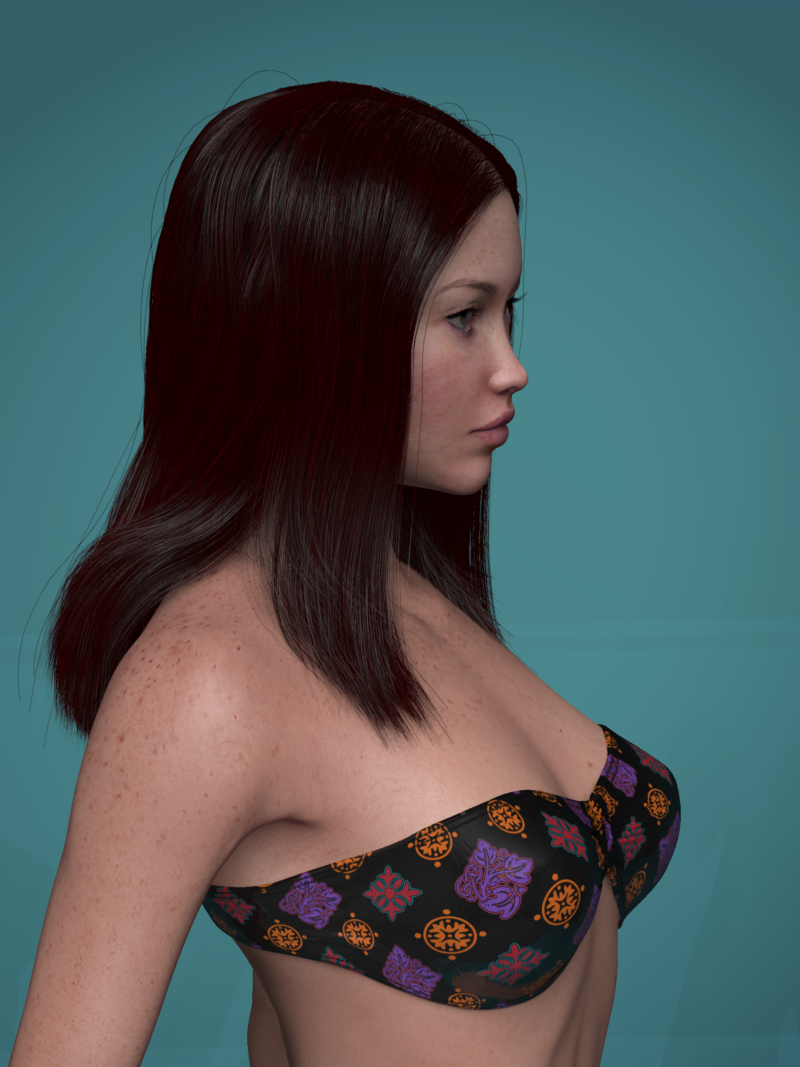 It's a long hairstyle tied back into a loose ponytail which is low to the nape of the neck.  Which is why it's a problem, frankly.  Unlike the other long hairstyles where it's pretty simple to use the brush tool in the modeling room to adjust the lower tips of the hair whenever a pose is causing it to clip through the clothes/shoulders etc, the ponytails will just pull loose when you use the brush tool on them, and basically they will no longer be ponytails (unless you take the time to painstakingly pull all the hairs at the point of the ponytail holder position back into place, which is time intensive).  The other ponytails are high enough up that most real life poses of the Genesis won't cause much noticeable clipping of the ponytail itself into the shoulders, but since this one is set at the base of the neck, very low down, it really doesn't take much swiveling of the head/neck to cause clipping.  So I recommend only non-extreme poses for using this one :)  Still it has enough broad utility that I think it's worth putting out there for you guys if you're interested.