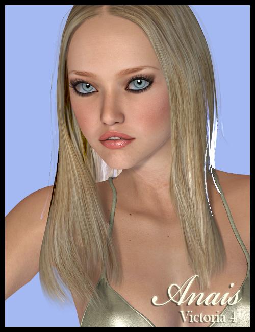 Anais hair is interesting; I wasn't using a reference pic per se but a mental memory of a render I had seen a long time ago.  I went hunting through the DAZ store and found it was attached to a character name Anais, and I have no idea what prop hairstyle was used in the promo.  Also my mental image was a bit off from what is pictured in the render promo, but still you can see it's not totally far off either.  I've seen lots of women with this style of 'straight down the sides, parted in the middle' type cuts.  It's not a bold or brassy style, but it's got a certain elegance and feminity to it.  I don't know how well it would work on a male character, but hmmm maybe it would be interesting.
