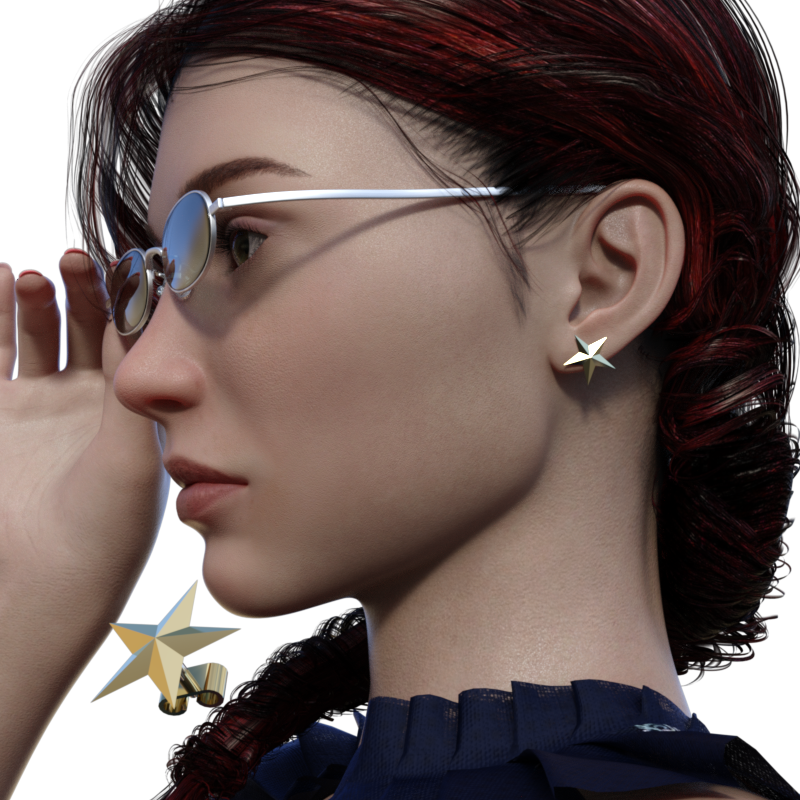 I am attempting to create something new for me. Please can I offer a pair of very simple conformal earrings in the shape of a star. In my little testing efforts, they seem to fit to G8F's ear lobes as one would expect with the different characters I have tried.