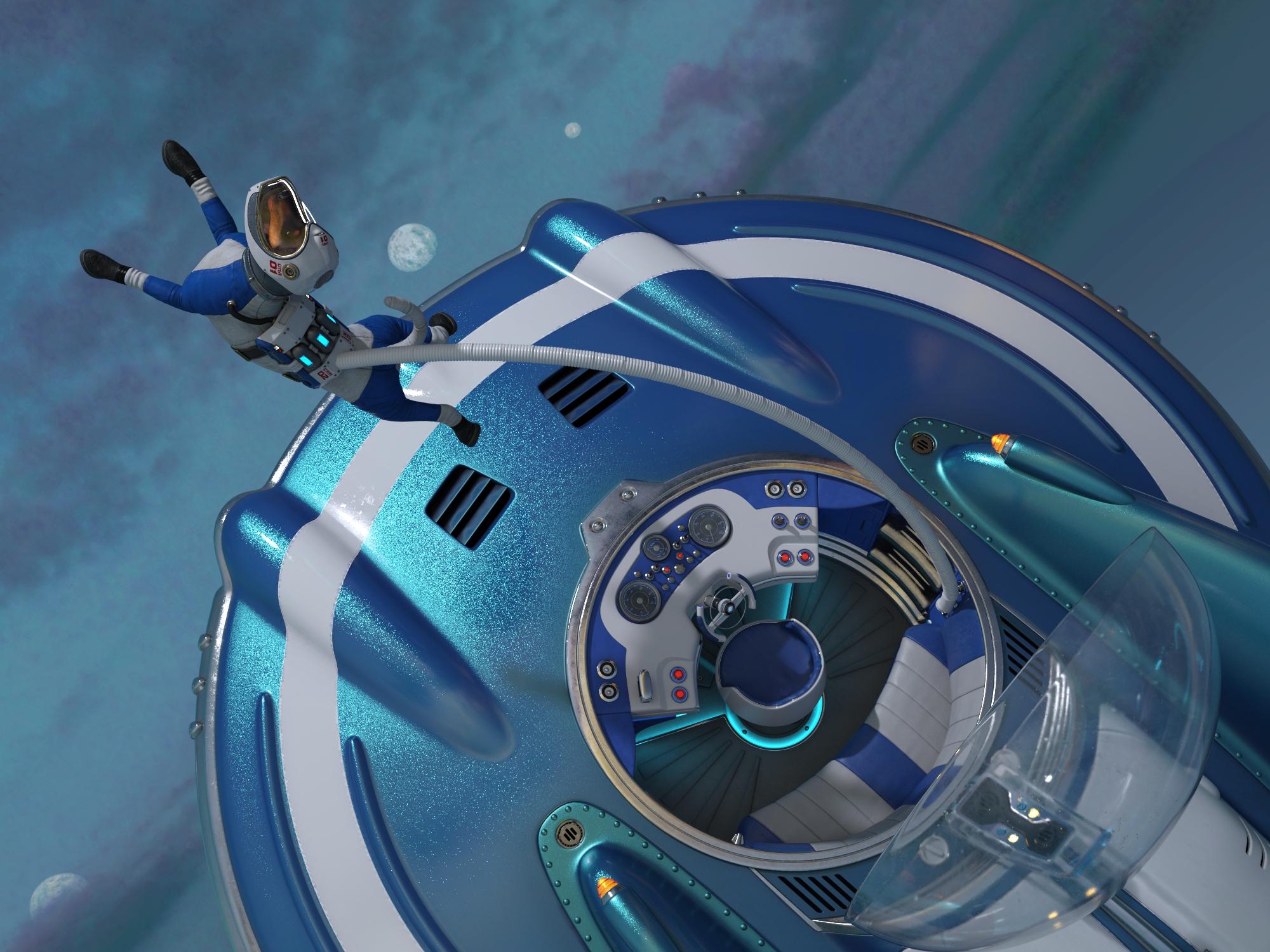 Doggos in space! The flakes in the paint job look so good, @Barbult. I've still been playing with this one, too. Here's a first stab at making some custom VDBs and importing them into DS for the engines and headlights: