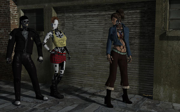 A slight bit of Carrara shader tweaking on the poser material presets for optimal render quality; swapped out the punk mohawk hair texture with one of Carrara's metal shaders.