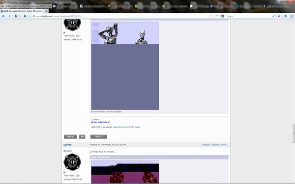 [sigh... ] can't even view the browser screenshot posted on this system, but can on the other... And its just the daz forums, other sites and deviantart work just fine.