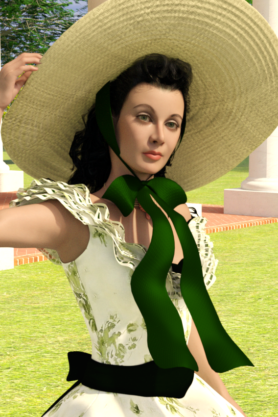 Scarlett G9 refers of course to Scarlett O'Hara from the movie "Gone With The Wind" (1939) - Vivien Leigh's most famous role and one she won an Oscar for. I even found in DAZ store the Scarlett O'Hara outfit from the beginning of the movie, so I obviously had to dress her in the "Southern Belle" clothes for the promos. smiley