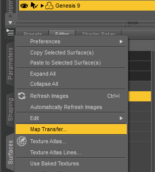 1) Go in the Map Transfer utility from the surfaces tab