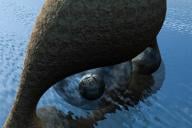 Another one, very different. This time, I used a seashore texture, slightly modified, by David Brinnen for the groundpland. The three lobed ring is the combers texture by David Brinnen. Sphere one is a glass bubble and sphere 2 and 3 are 'lint' from the clouds-surfaces material. The IBL used for the sky is the ErmClouds01_SD_SC HDRI. Another one is running with the same settings, but this time 100% anisotropy (radial) added to the combers texture on the three lobed ring. I will add that one to this thread later.