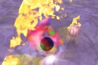 Finally, one more: this is one with a set of weird (volumetric) textures that took a long time to render. The black circle is the 'no shadow' texture on one of the small spheres. The other small sphere has a fuzzy texture. The Sphere 1 has a volumetric texture giving those psychedelic colours.