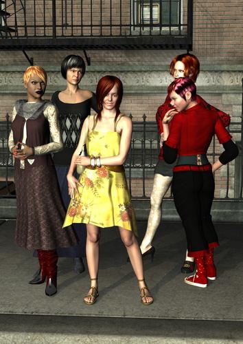 I've been doing a series of images under the collective title/theme of New Girl as new characters are released. This time it's Steph 5 in centre frame, with, clockwise from left front: SP4 Astrid , V5 Base, SP3 Peony and a custom dialled petite V4 I came up with before SP4 was released