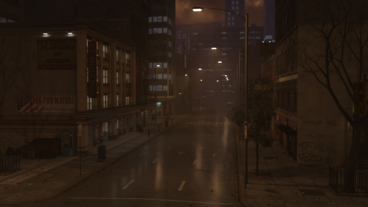 That's just a small part of it, but I went around the entire car chase route and swapped a few choice buildings here and there, just to create the effect. Renders really fast, too!