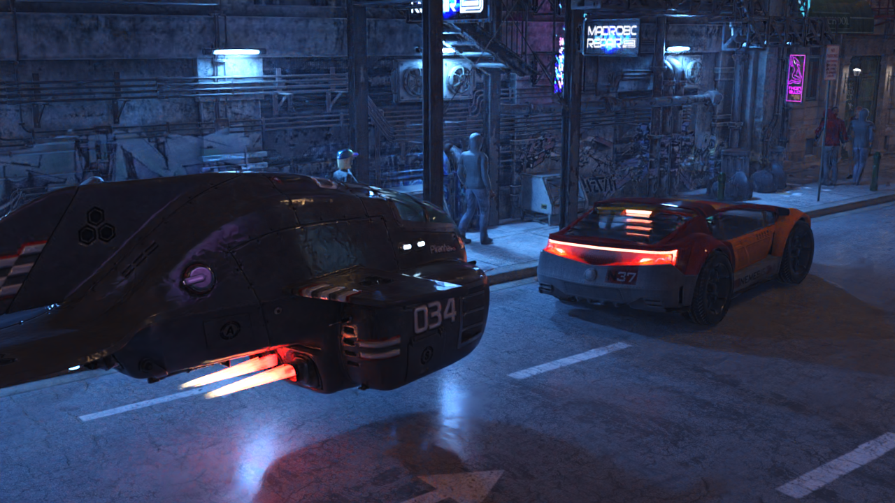 Cool! With Rosie in her Nemesis, being chased by Corp Soldiers in their Piranha, I'm coming in at 5.8GB on my RTX, so renders are speeding along!!!
