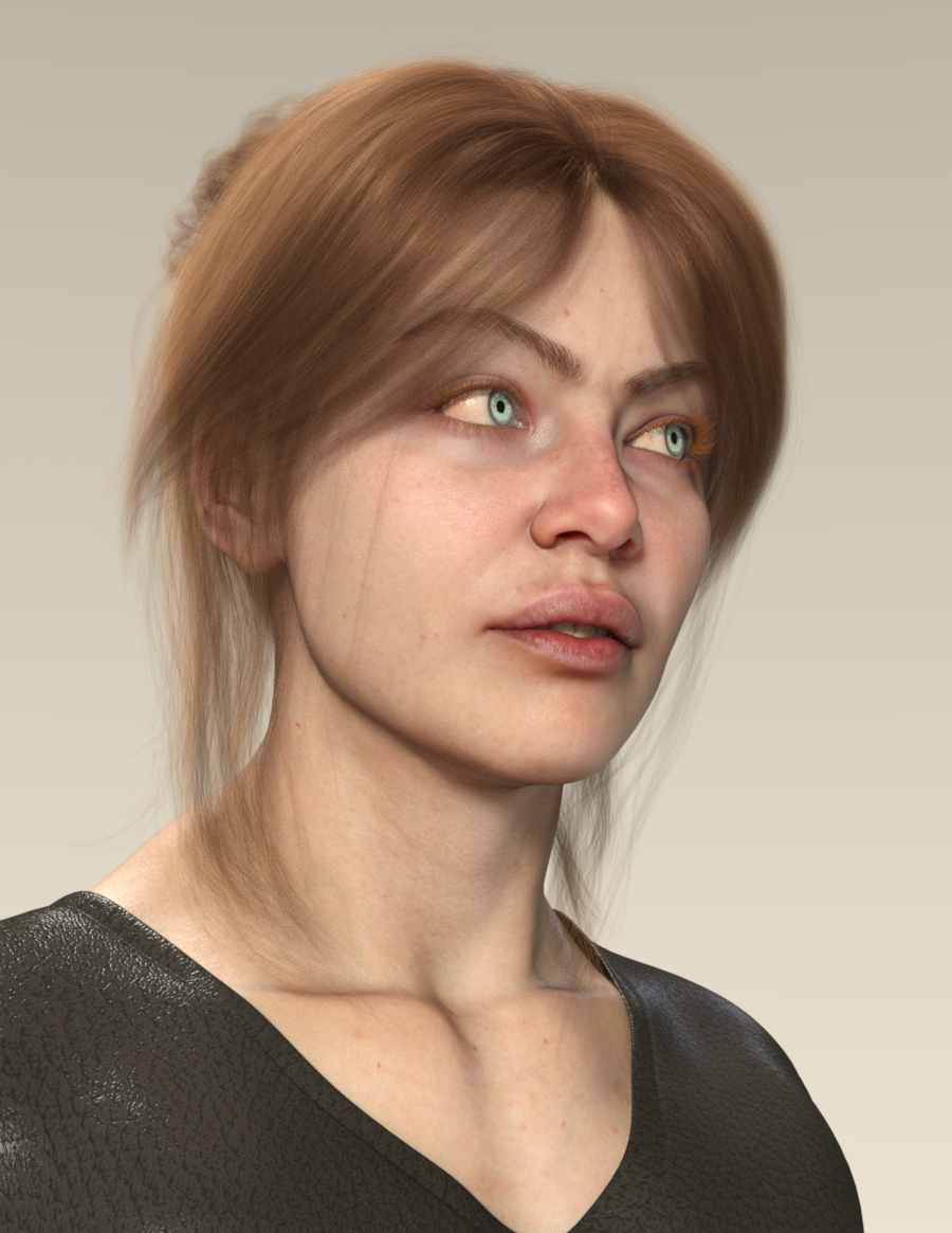 Again, the pores bother me with 3D's supposed realism. Anyone wearing that much eye makeup and lipstick would surely use a base foundation especially if they had such pronounced pores. I never see people with pores like that in real life. At least not on women. Even with no makeup on, you can't see my pores in the mirror even when super close up. I just don't get 3D's obsession with pores! Is that Freja's skin? I don't see that on Belle. Just checking it seems to be. I think the skin is more suitable for males than females.