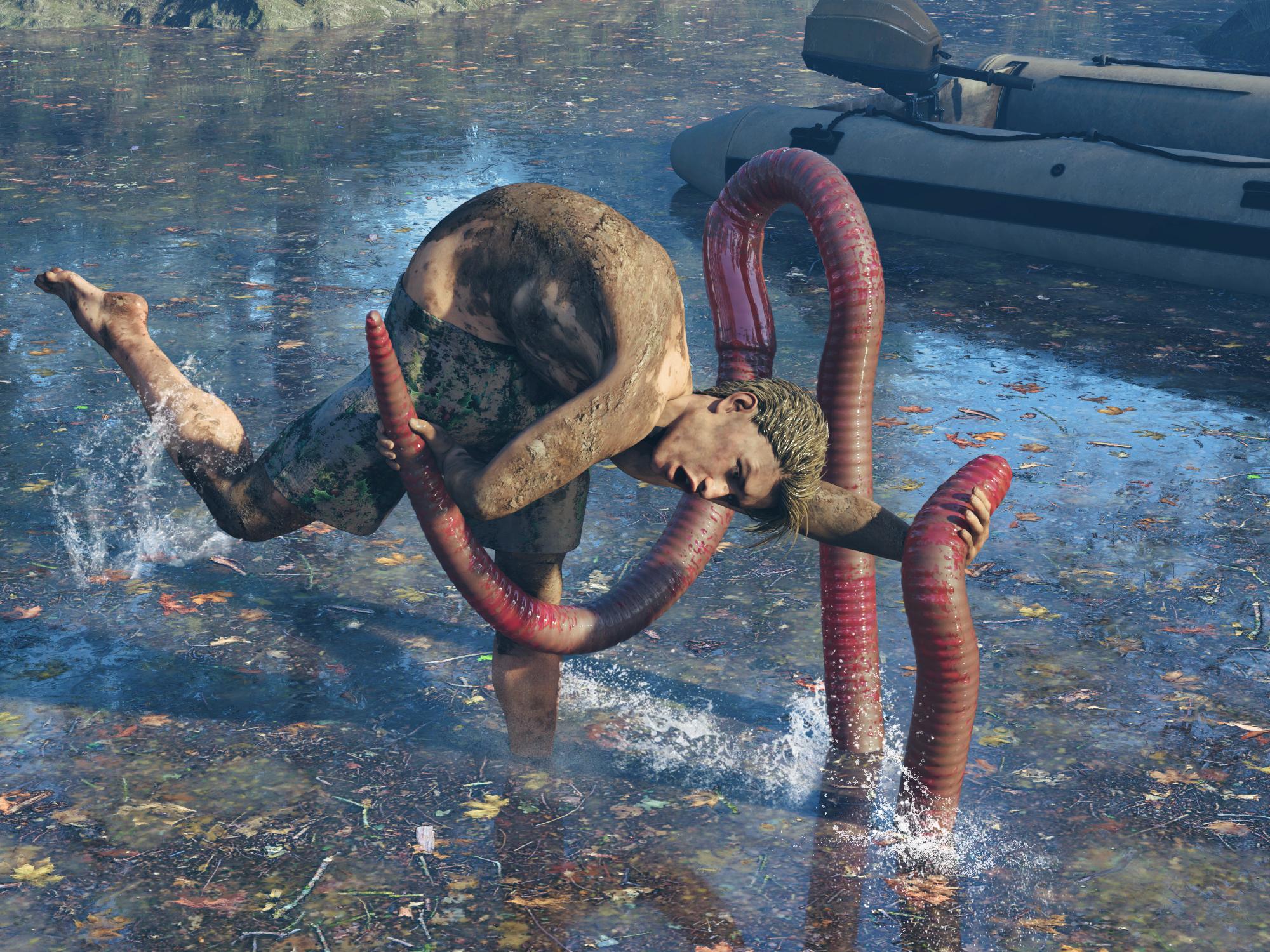 Now this one got kind of carried away! I posted it in my Gallery. This is what I said there "Well, it all started with me looking through my library for items with a parented hierarchy that I could use with StickyChains. I found a product called Worms. And of course there are the bones of Genesis 9. So... a few StickyChains later, this Laocoön-like serpent wrestling match emerged from my imagination. Poor Genesis 9 is twisted like a pretzel. Photoshop was used to add the final touches.