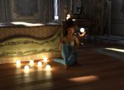 I like the lights here very much, for me this is not to dark. I'm not sure what it is but there seems to be something strange with her skin on her right side of the face and neck, (are these the feared fireflys Iray produces?)