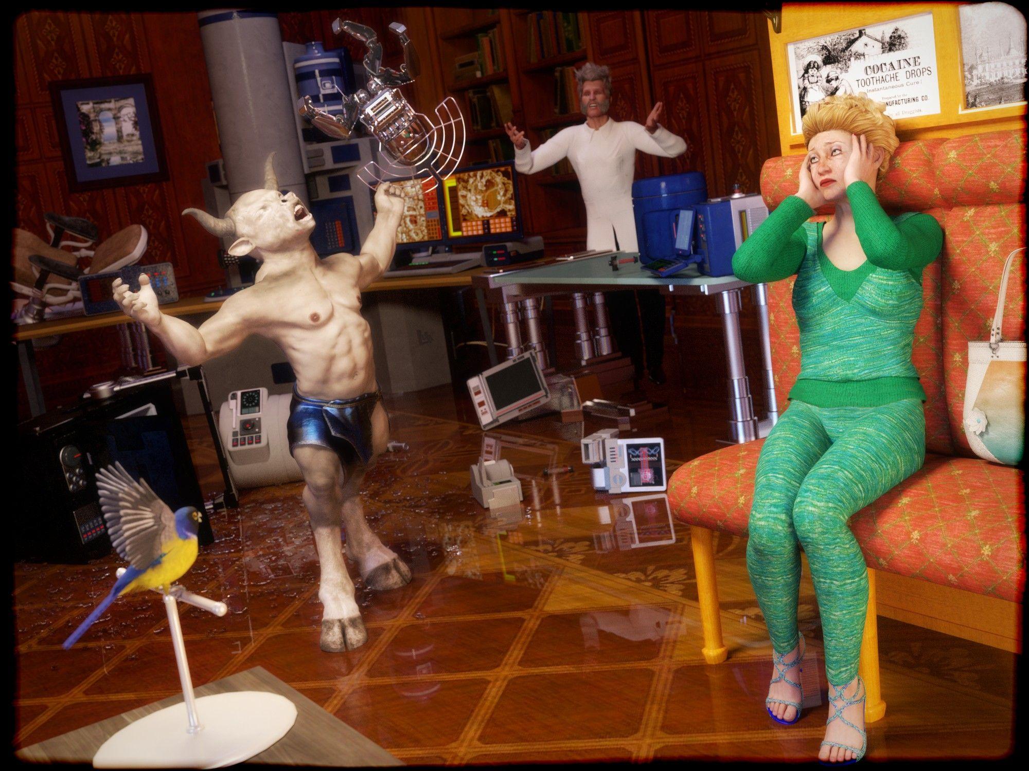 Young Asterion is not happy when he learns that his mother, Queen Pasiphaë, has brought him to Dr Brauer's Clinic for Genome Theraphy in order to "take some of the bull out of him."