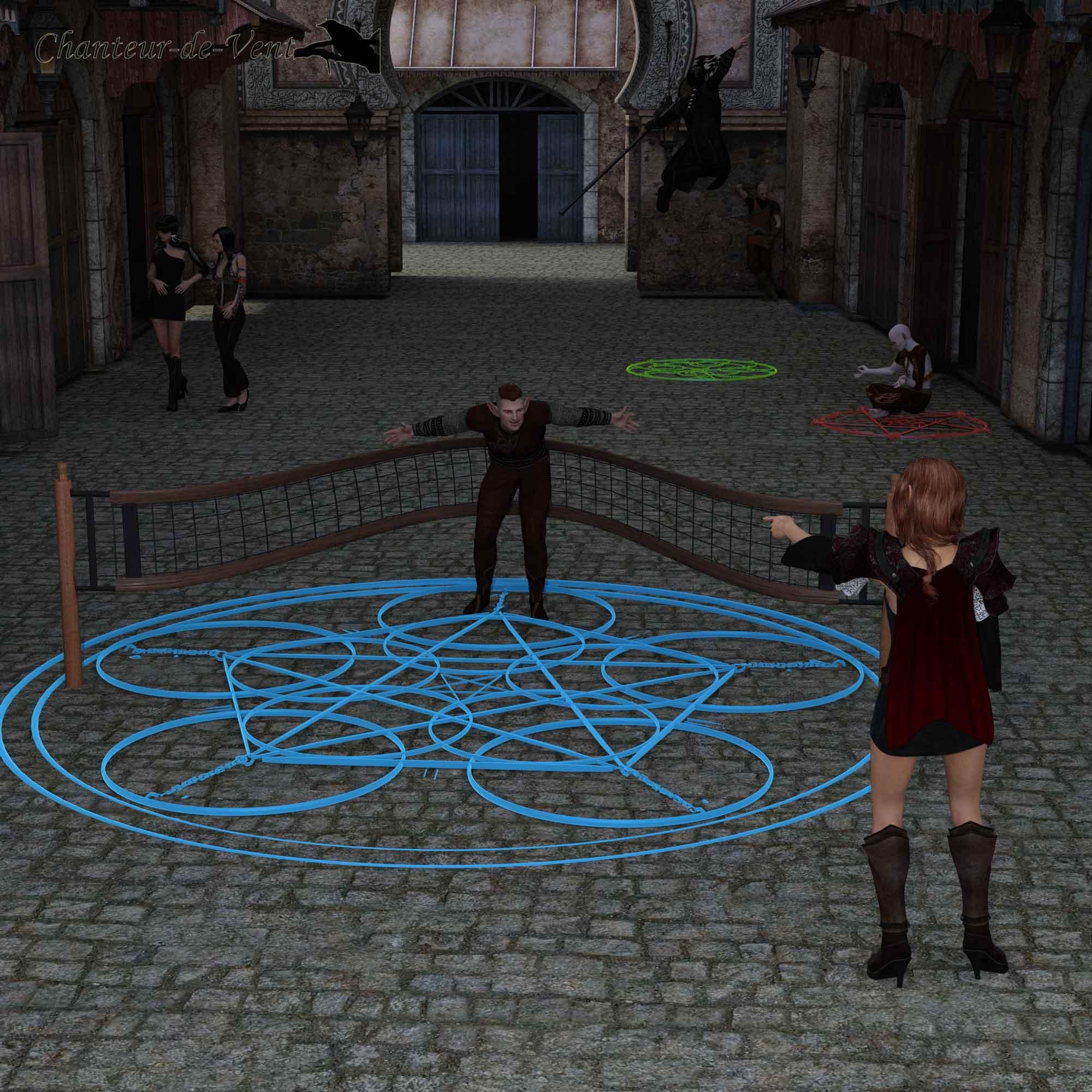 For the final exam at the magical academy the guys needed to invent their own flying spell. On the day before the exam everyone was trying out different things, while the gilrs (who passed their own exam weeks ago) watched them practicing. Castor thought he had the brightest idea on how to pass the exam, using a magically enhanced human catapult...