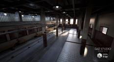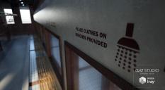 A highly detailed Prison Shower Room complete with benches, showers, plumbing, and static soap prop. An access corridor with security door and exit walkway allows for kitbashing with other sets in your runtime.....
