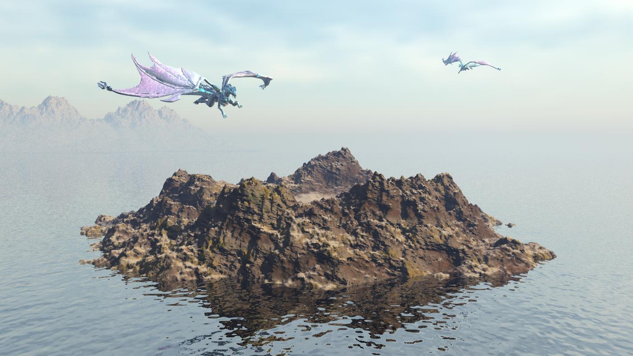 Yellow Pen : Delightful image, the island and the dragons looks great.