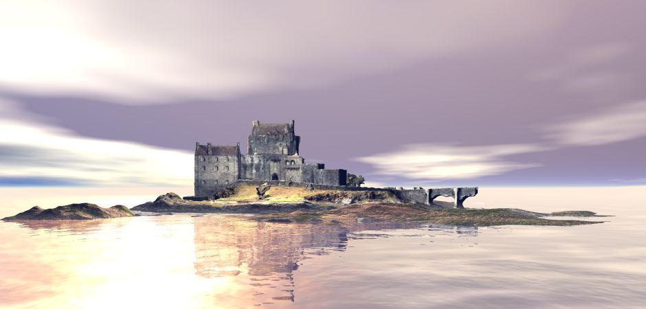 "Eilean Donan Castle" : the castle is from Sketchfab by FUD-UJEP. Added Bryce terrains and a slab for the water.