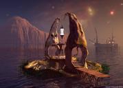 Thank you mermaid, Horo and nvllcasting. Mermaid, no, I used Andi's skeleton Sydd. I deleted all his body parts except the skull. I resized a terrain for the island. I had to add a couple of minor terrains to it because I couldn't get edit to add a peak to it and it was flat. I'm not sure why. I'm clueless in the edit.