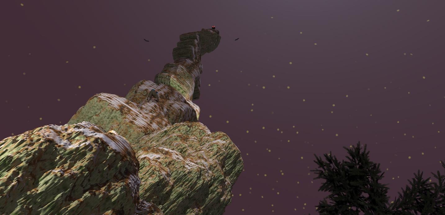 Rocks are from Estevez. Birds from the well-known set (they are bald eagles, I think). Just a simple tree. The 'starfield' I made is much less perfect and spectacular as that by Horo. I faked it by using a volumetric sky slab with 'dots' as starting point. I tried various versions and liked the one with limited number of 'stars' best.