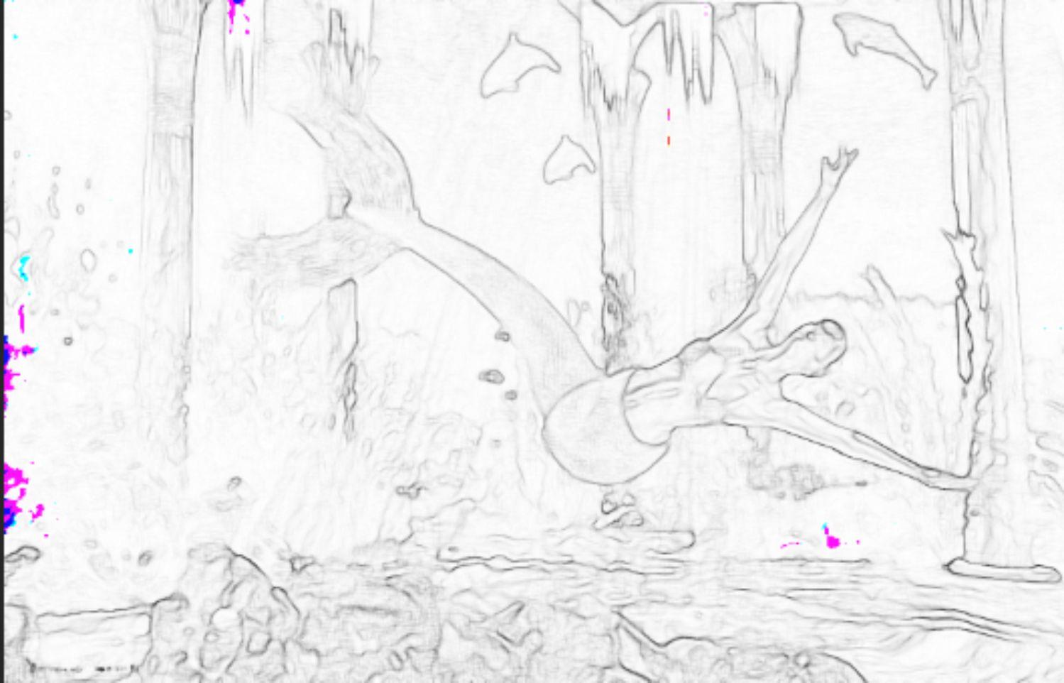 There are two options, Cartoon Sketch Action, and Cartoon Sketch Action SHARP. I did them separately, I assume you aren't supposed to use one then apply the other, as the rest of the products have each thing as a separate effect. After applying, I believe this is correct. Look at the water ripples by the outstretched hand, between the hand and the dolphin, and you can really see the difference (among other places of course.) The sharp is indeed sharp.