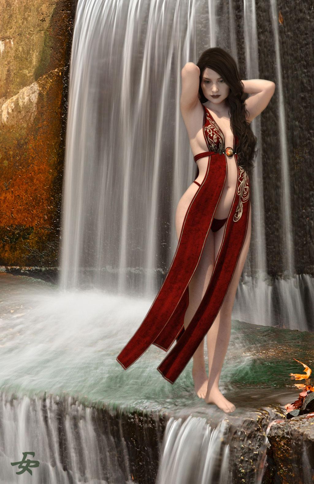 This is Creative Retouch (again from Graphic River)  product number 11538758. I'm going to test with some tweaks. See comments below both images. This will show you how much you can change the basic default results. Be sure to click and enlarge, click again, and look at how sharp the mesh is on her chest, showing the light through the bra cup. And those rocks in front- so much sharper!!!