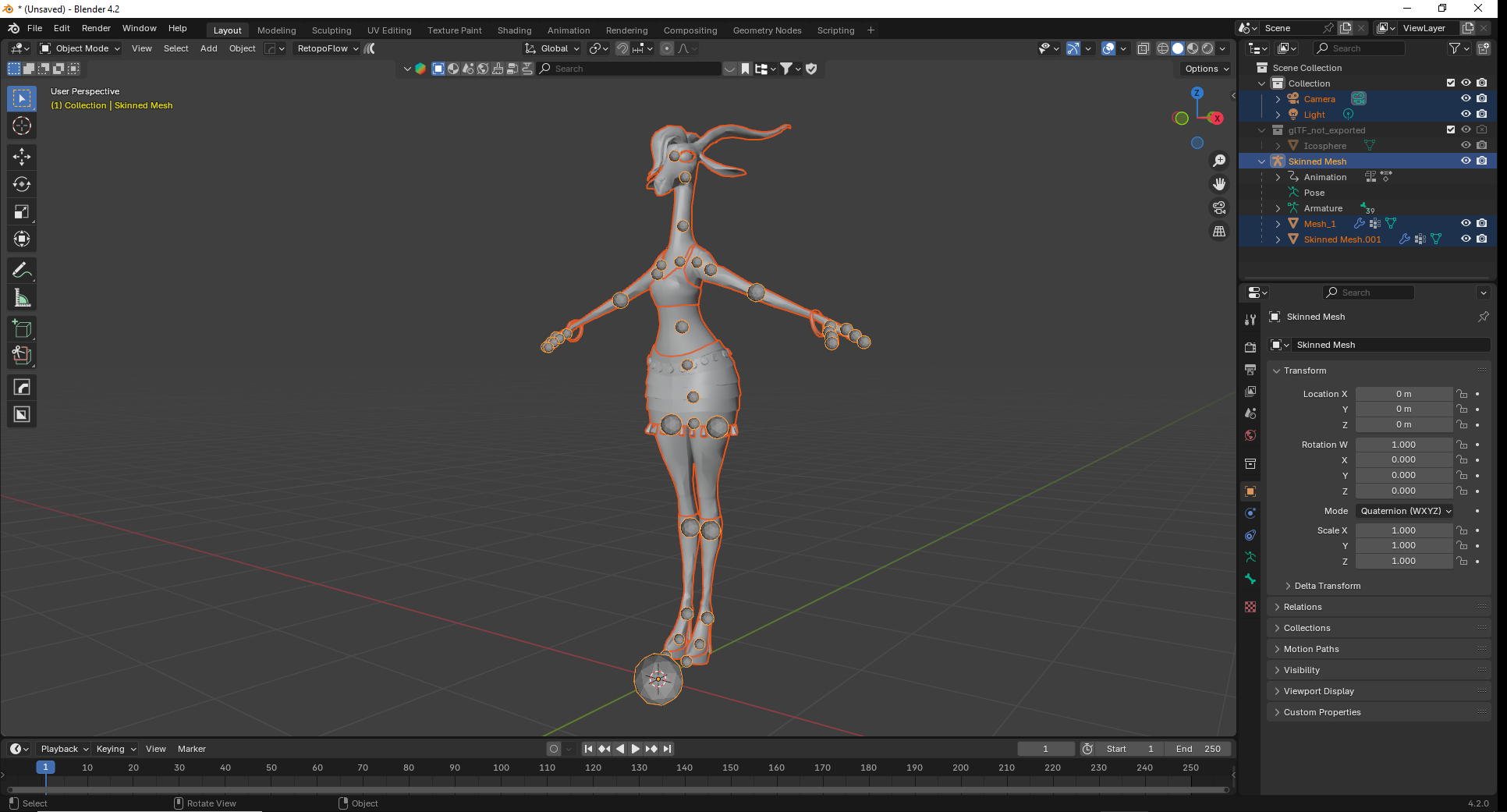 Blender 4.2 after glb file imported. Blender 4.5 did not initially open the glb files, second try of 4.5 it worked.