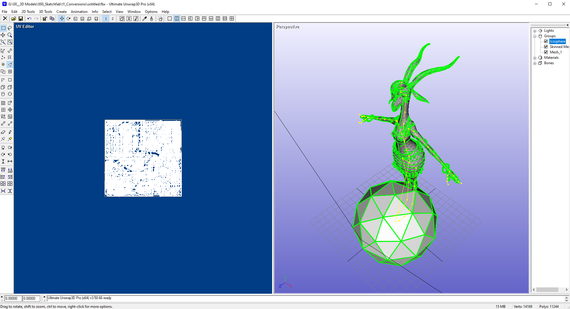 Opened exported FBX file from Blender in Ultimate Unwrap. Icosphere can be turned off.