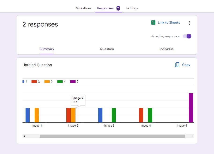 HOWEVER, you can then create a Google Sheet from the responses, which can then be used to tally the numeric responses with the addition of a few formulas at the bottom. Attached photos show a walkthrough.