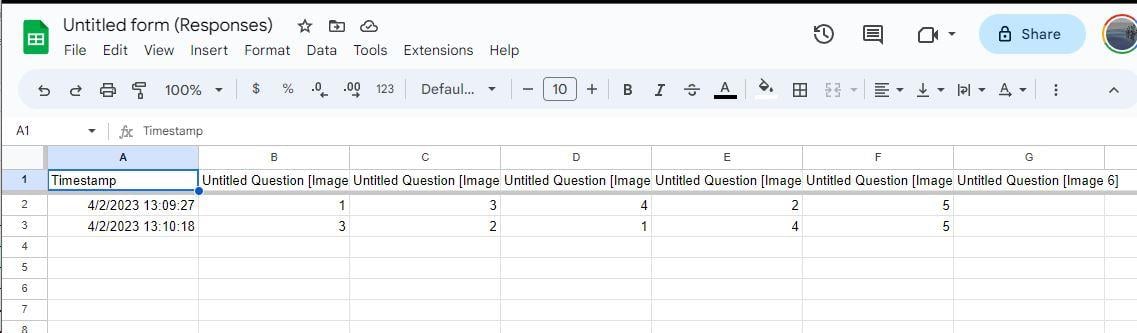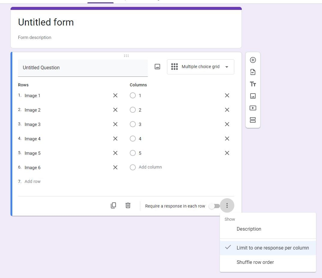 You'd put the image names in the rows and your rankings in the columns. You can see how that looks in the form setup and how it looks to the end user in the files I attached.