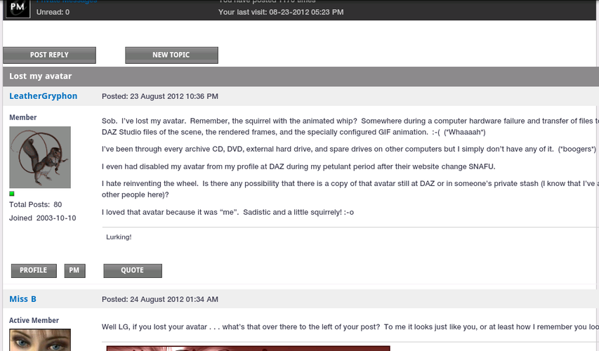 I even had disabled my avatar from my profile at DAZ during my petulant period after their website change SNAFU.