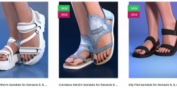 I have to say that the vendor cWodrex has released some of the coolest sandals for DAZ Studio so I'm hoping the vendor will see this and consider creating sandals based off of the images of the product suggestion for 70's Tire Sandals that I'm including in this post next to the image of the three really cool sets of sandals that vendor has already done.