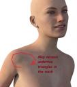 I think there may be something going on with the pose. I get some articfact around the armpit, see first image. Seconf and third images are with the Standing-006a pose. Default HRDI lighting only. Not seeing triangles.