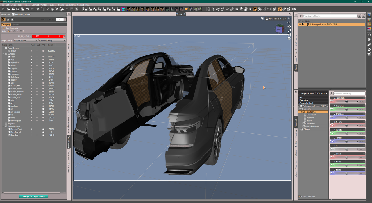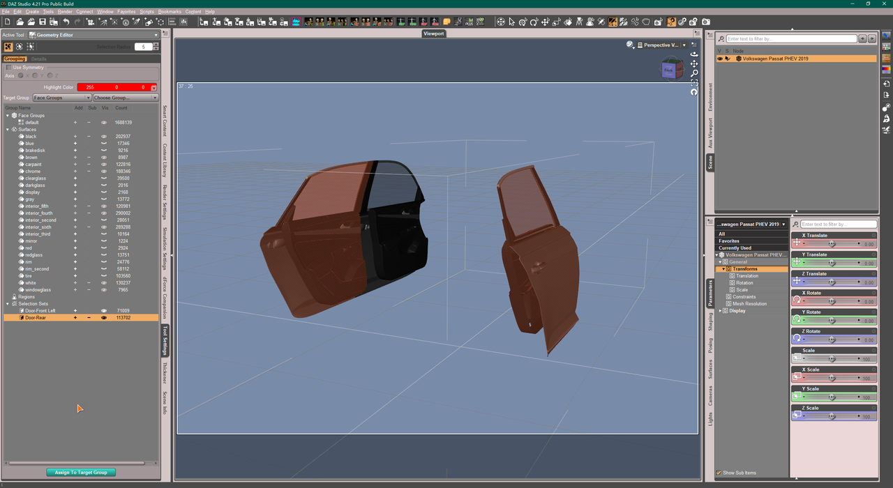 Repeat these steps on 'Front Doors'... For this Passat, it will appr. take 15 - 20 mins at most to separate 4 doors. Create Face Groups from Selection Sets as needed, then go for rigging.