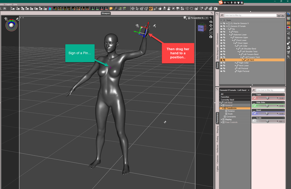What I mean by this is for example can when you drag pull a characters left hand down by using mouse their entire upper body will bend to the side along with it as you move her hand down. Could you restrict it to be able to pose drag just the hand only or just the arm only with it so that the rest of the body will not react to what you are doing? Thanks.